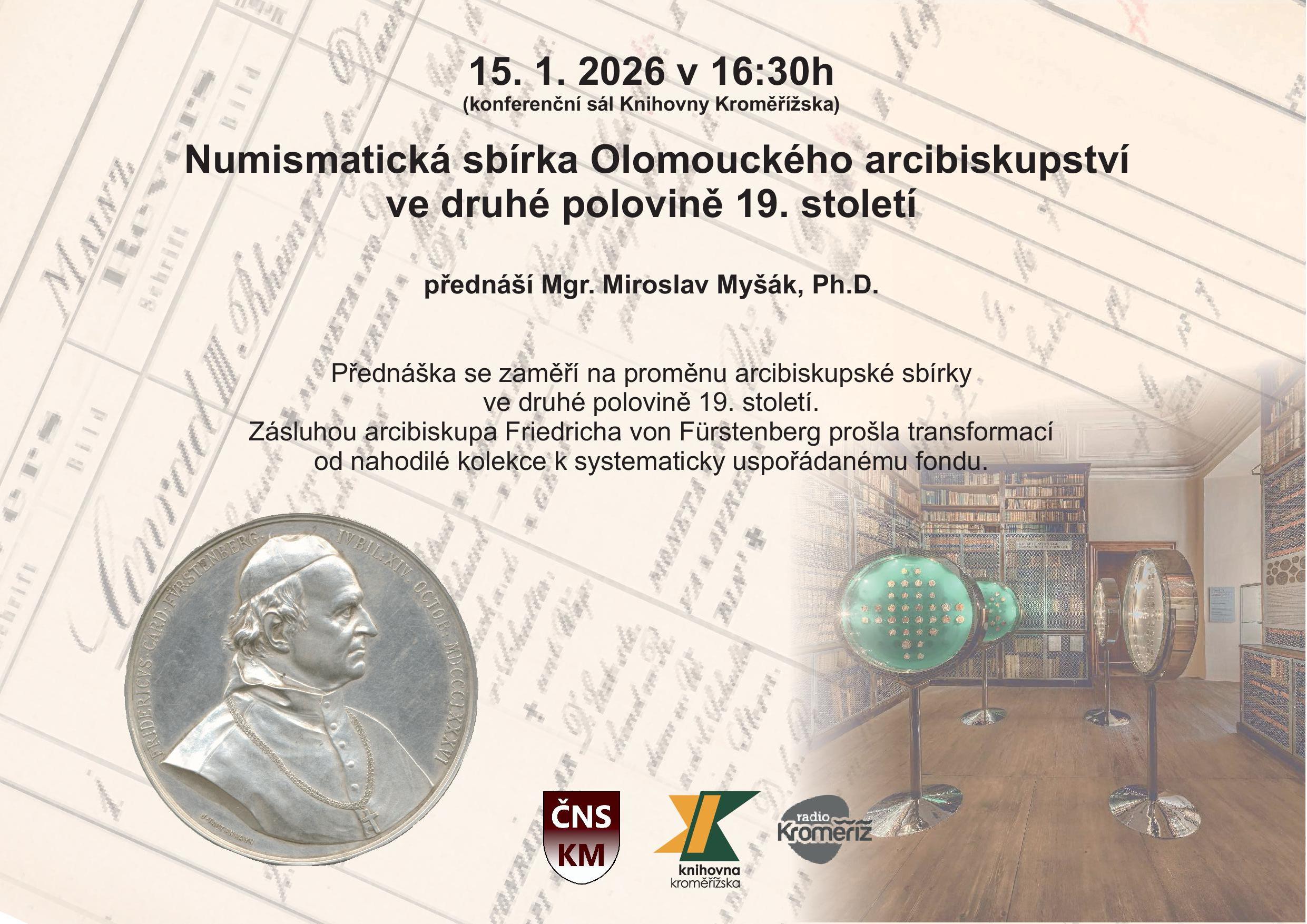 Dovolujeme si Vám oznámit i v roce 2026 pokračuje série veřejných přednášek s numismatickou tématikou v Knihovně Kroměřížska, Slovanské nám. 3920, 767 01 , Kroměříž.